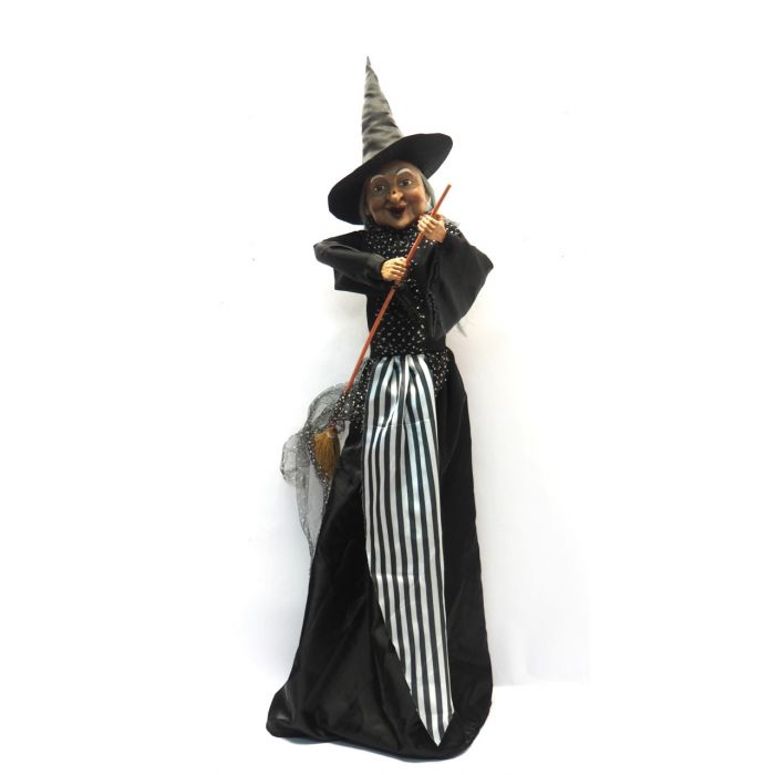 BEFANA NERA IN PIEDI CON VESTE IN TESSUTO E SCOPA H. 100CM