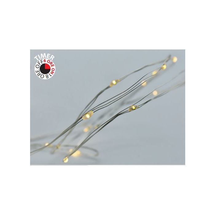 | Note | - Lunghezza catena luminosa: 9mt; - Lunghezza cavo di alimentazione: 30cm; - Filo in metallo modellabile; - Giochi di luce memory con timer (6 ore ON/18 ore OFF); - Funziona a batteria (3xAA/LR6-Stilo non incluse); - Per un uso interno ed esterno |