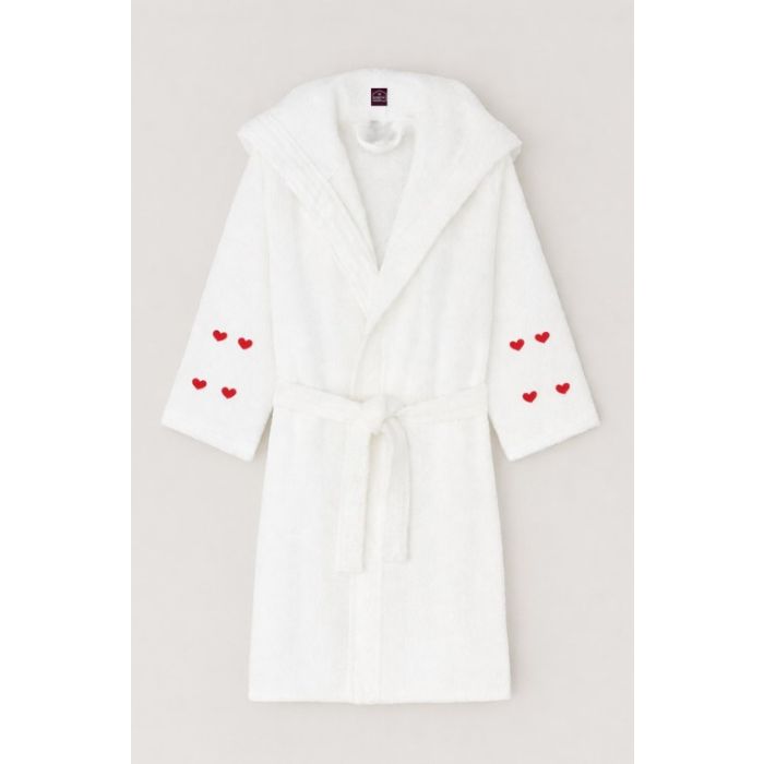 ACCAPPATOIO CUORICINI CM 70X140 IN COTONE BIANCO CON MICRORICAMI ROSSI