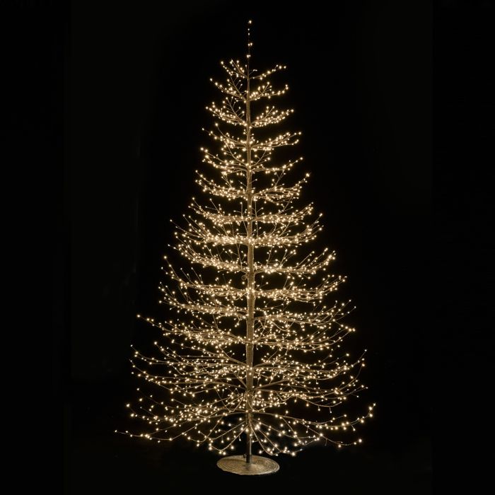 Albero a forma di abete alto 210 cm in PVC, metallo e resina, con base in resina diametro 32cm, dotato di 3490 LED bianco caldo a luce fissa, cavo 5mt e adattatore GS 24 V 36 W, per uso interno ed esterno.