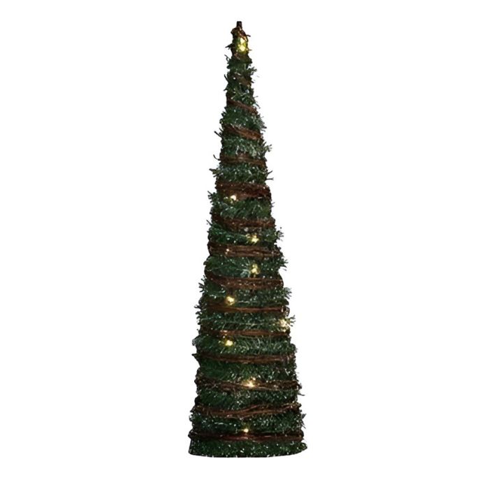 - Con struttura in metallo - Rivestito con boa verde in pvc - Intervallato con rami intrecciati color marrone - Dotato di luce led bianco caldo - Funzionante tramite batteria - Perfetto per ricreare la magia del natale |