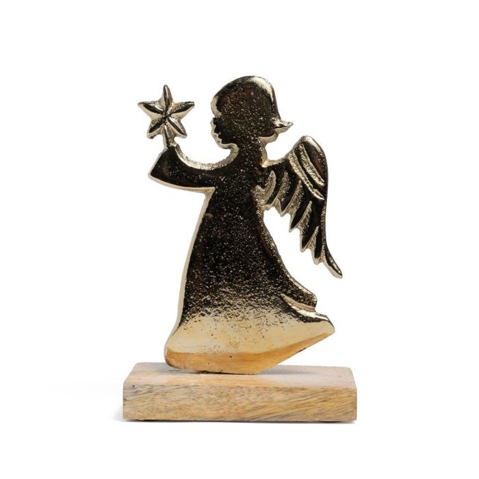 ANGELO IN LEGNO E ALLUMINIO COLORE ORO 9X5CM H 16CM