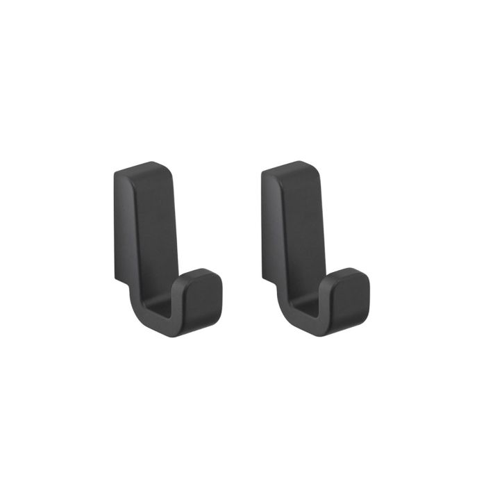 Set 2 appendini da bagno linea SAMOA in ottone e Cromall, colore nero matt, dimensioni 2×4,2 h. 5,9cm (L×P×H); fissaggio a muro con viti; design compatto e robusto con finiture opache resistenti, facile da installare e da pulire, perfetto per appendere accappatoi o asciugamani e completare il bagno con un tocco moderno e coordinato.