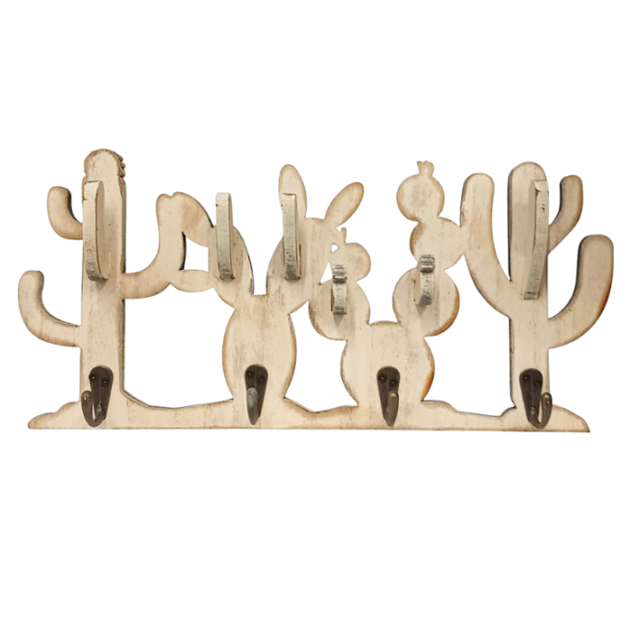 APPENDIABITI DA MURO CACTUS CM 40X18 IN LEGNO NATURALE E METALLO
