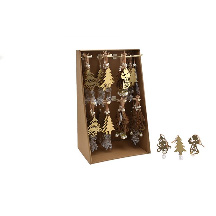 PENDENTE CON FIGURA NATALIZIA COLOR ORO E PERLINE H. 17CM ASSORTITO