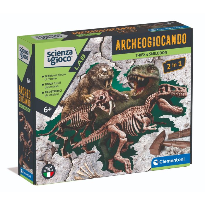 CLEMENTONI SCIENZA E GIOCO - ARCHEOGIOCANDO T-REX E SMILODON 2IN1