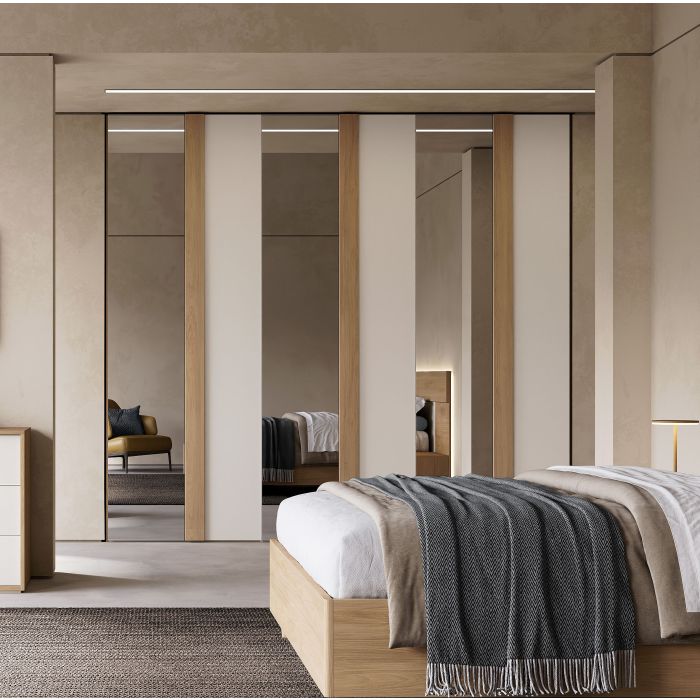 - Con specchi fumè DOTAZIONE INTERNA: - 3 Ripiani - 6 Tubi appendiabito - Maniglia noce |