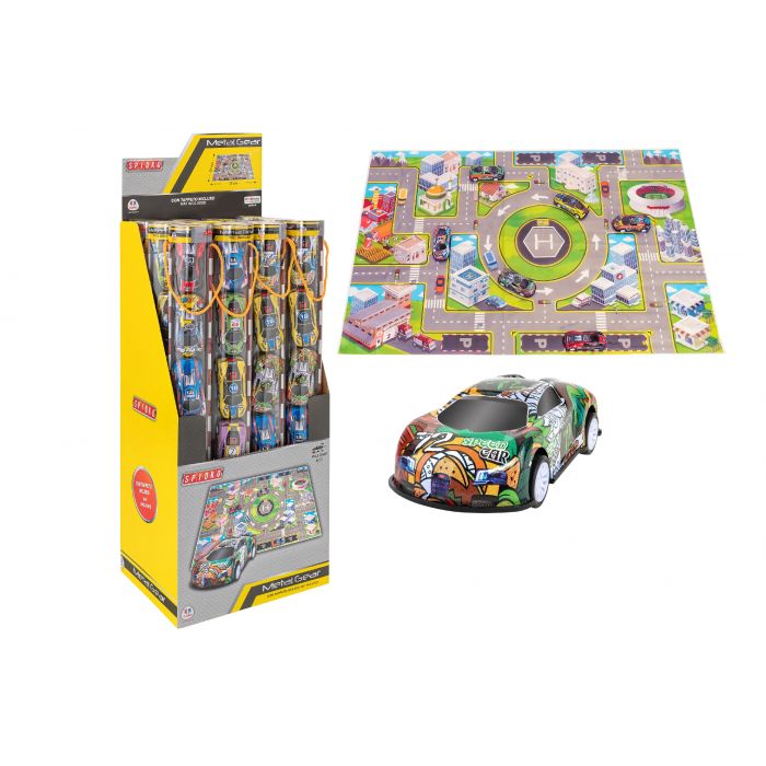 AUTO IN METALLO CON RETROCARICA E TAPPETO IN PVC 76 6 PEZZI SCALA 1:43