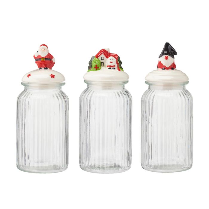 - Tappo con decoro natalizio assortito con guarnizione in silicone - Superficie con decoro righe - Lavabile in lavastoviglie - Perfetto per contenere spezie, dolci o caramelle è ideale per la tavola natalizia. - Prodotto Assortito |