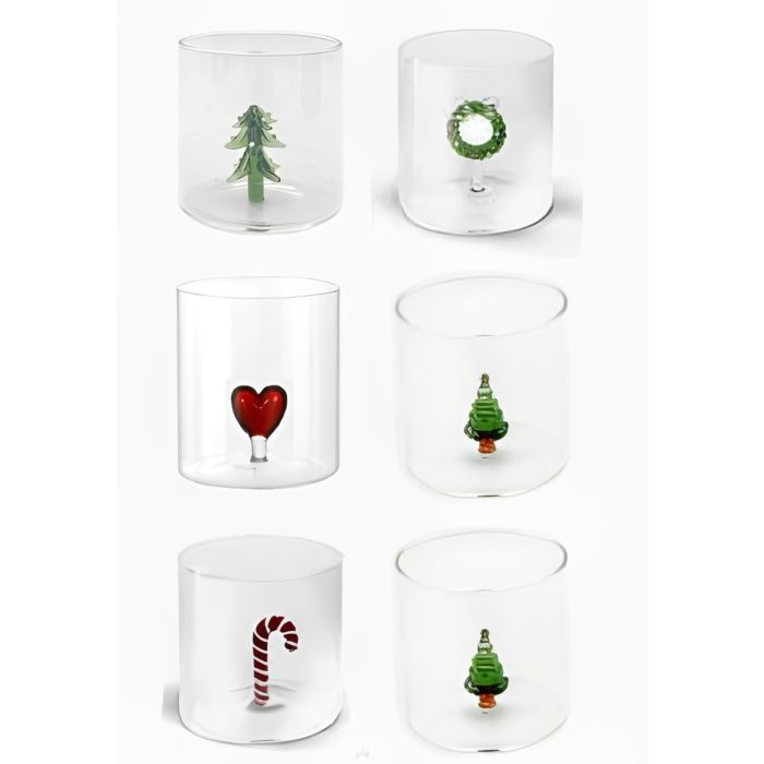 BICCHIERE DI VETRO TRASPARENTE CON DECORO NATALIZIO 8X8CM ASS.