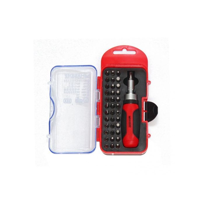 | Note | - In pratico box plastica appendibile; Confezione da 37x inserti/Bit in acciaio cromo-vanadio: - A taglio: 2 2,5 3 4 5 5,5 6; - PH0 1 2-3; - PZ:0 -1 2 -3; - TX10 15 20 25 30 40; - esagonali HEX: 2 2,5 3 4 5 5,5 6; - Quadrati SQ1 2 - Con giravite porta inserti a cricchetto impugnatura ergonomica in bimateriale |