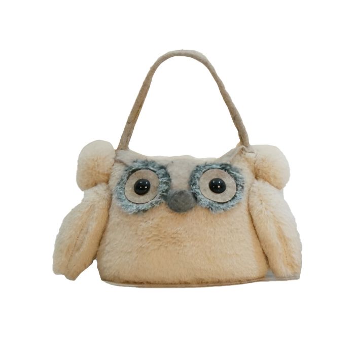 BORSA A FORMA DI GUFO EFFETTO PELOSO BEIGE H 14CM