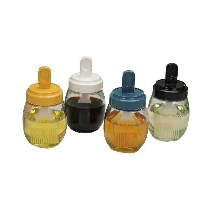 Bottiglia per olio modello OLLY in vetro con capacità 290ml, dotata di pennello integrato in silicone bianco per un’applicazione precisa e uniforme dell’olio; il tappo in plastica è disponibile in colori assortiti, unendo praticità e stile. Perfetta per condire a tavola o in cucina, la struttura in vetro garantisce conservazione sicura del contenuto e pulizia semplice grazie al pennello rimovibile.