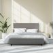 - Letto matrimoniale con giroletto in tessuto grigio chiaro, sobrio e versatile, che si integra perfettamente con le tonalità della composizione, creando un’atmosfera armoniosa e rilassante.