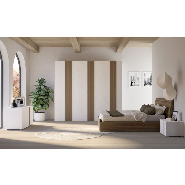 Questa composizione rappresenta una soluzione completa per arredare la zona notte con gusto e funzionalità, perfetta per chi cerca un ambiente accogliente, ordinato e dal forte impatto estetico.