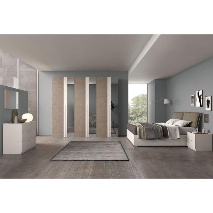 Armadio 6 ante con specchi fumè cm 270 x 58 H.247 Como' cm 123 x 50 H.81,5 Specchiera cm 85 H.55 2 comodini cm 53 x 44 H.49 Letto con contenitore cm 168,5 x 213 H.96 (cuscini non inclusi) MATERASSO 160X190 NON COMPRESO ABBINABILE A ABBINABILE A ABBINABILE A |