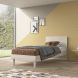 Completa l’ambiente il letto singolo con giroletto in laminato olmo, dal tono caldo e naturale, che dona un tocco di eleganza e armonia. La struttura è solida e pronta ad accogliere rete e materasso a tua scelta, per personalizzare il comfort.