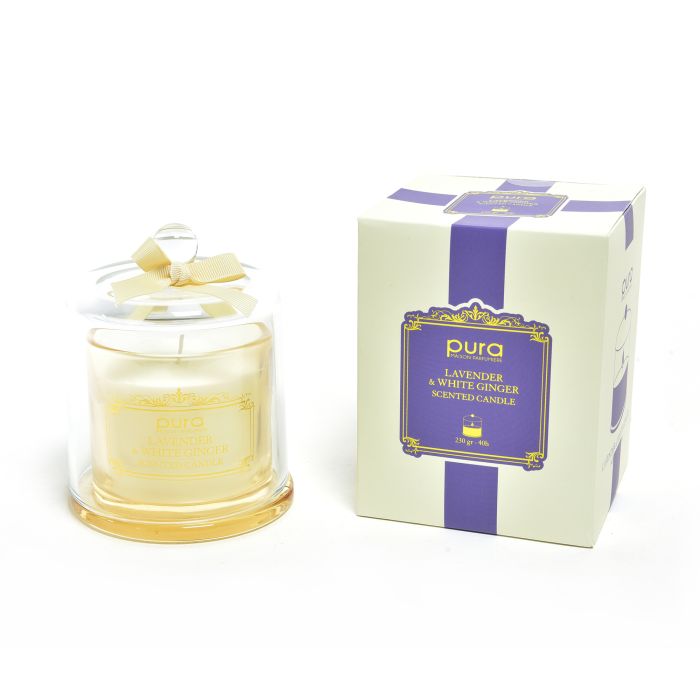 CANDELA LAVENDER E WHITE GINGER 230GR IN CAMPANA DI VETRO DIAM.10.5CM H.14CM