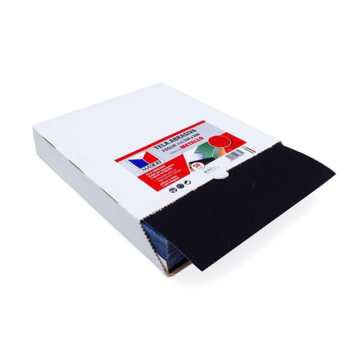 Carta abrasiva per metallo 230 × 280 mm, grana 100, tela abrasiva su supporto carta ideale per sgrossatura a secco su metallo (utilizzabile anche su legno grezzo o trattato); adatta all’uso a mano o con tampone, priva di additivi chimici nocivi per persone e ambiente, Made in Italy e venduta in esemplare singolo, soluzione resistente e professionale per preparazione e rifinitura delle superfici.