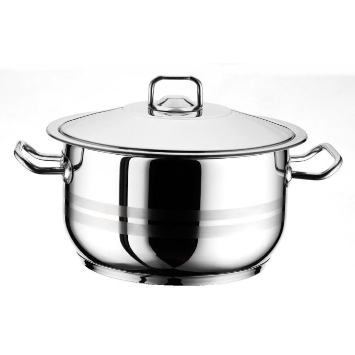Realizzata in acciaio Inox 18/0 di altissima qualità, la casseruola offre una resistenza superiore alla corrosione e all’usura, mantenendo la sua lucentezza e integrità nel tempo. Il suo design elegante con finitura lucida e bande orizzontali satinate aggiunge un tocco di professionalità alla tua cucina.