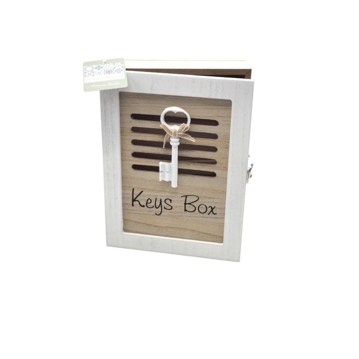 - Chiusura con fermaglio girevole - Dotata di 6 ganci interni per appendere le chiavi - Facciata con fessure orizzontali e chiave decorativa bianca stile vintage - Montaggio a parete - Facile da appendere |