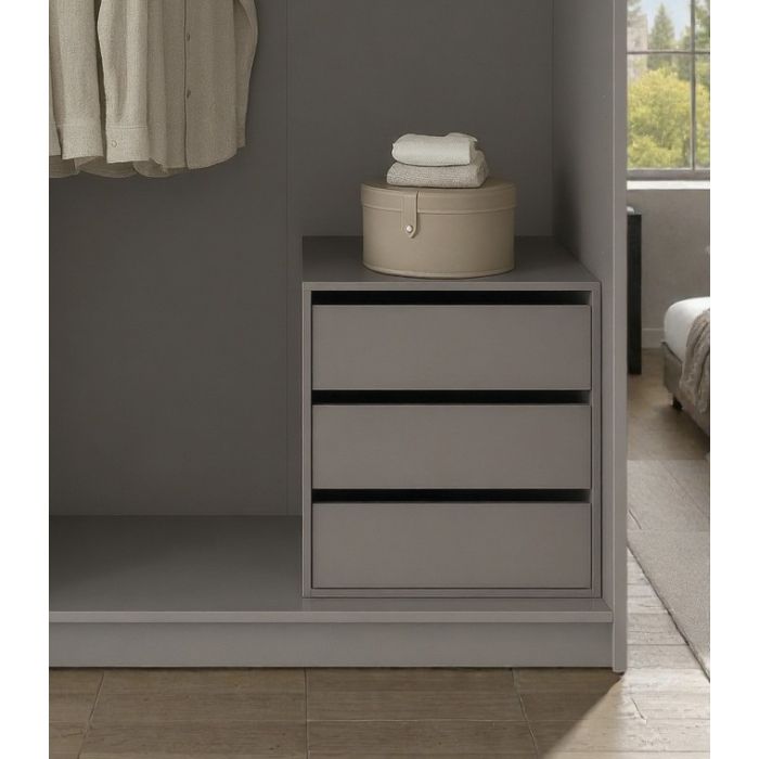 Con un design moderno e compatto, questa cassettiera interna in laminato grigio si distingue per la sua versatilità e sobrietà. Le sue dimensioni contenute — 58 cm di larghezza, 51 cm di profondità e 59 cm di altezza— la rendono ideale per ogni ambiente. I tre cassetti offrono uno spazio generoso per organizzare con ordine accessori o capi d’abbigliamento, mantenendo tutto a portata di mano. Il grigio uniforme della struttura e dei frontali donano eleganza; perfetta per chi predilige uno stile contemporaneo ed essenziale e adattabile a qualsiasi finitura e colore. Arriva smontata in kit, pensata per un assemblaggio semplice e intuitivo, lasciando spazio anche alla soddisfazione di chi ama costruire il proprio arredo. Una soluzione pratica, funzionale e di stile.