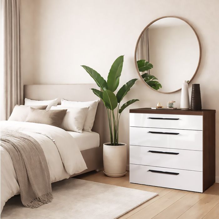 CASSETTIERA MOD. MOMENTI CM 82X45 H.81 ROVERE TARTUFO E BIANCO LUCIDO