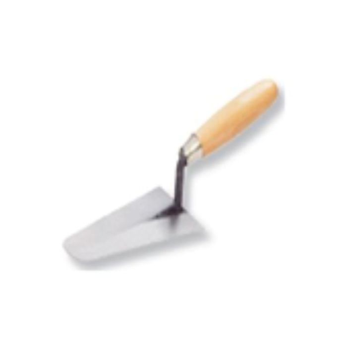 Cazzuolino a punta tonda 14 cm con manico in legno e lama in acciaio temprato, progettato per lavori di muratura e finiture, impugnatura confortevole per presa sicura e controllo preciso, lama temprata per maggiore resistenza e durata nel tempo.