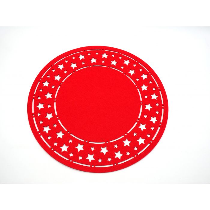 CENTROTAVOLA IN PANNO ROTONDO TRAFORATO STELLINE D35CM ROSSO