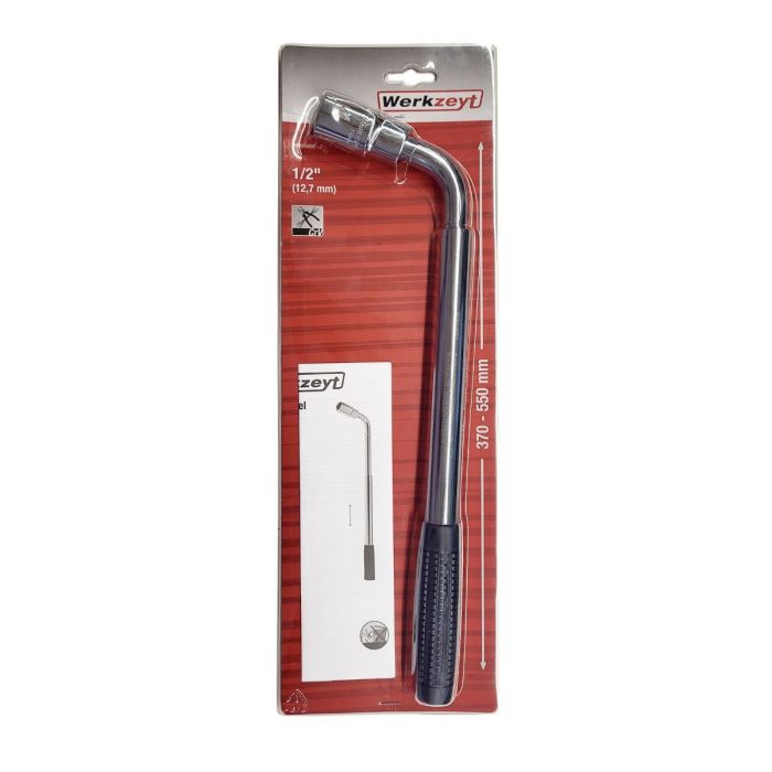 Chiave telescopica per auto 17/19 mm con lunghezza estesa di 550 mm, progettata per offrire maggiore leva e facilità di serraggio e allentamento dei dadi ruota; dotata di testata GS che garantisce qualità, resistenza e sicurezza d’uso, è ideale per interventi rapidi e affidabili su auto e veicoli leggeri.