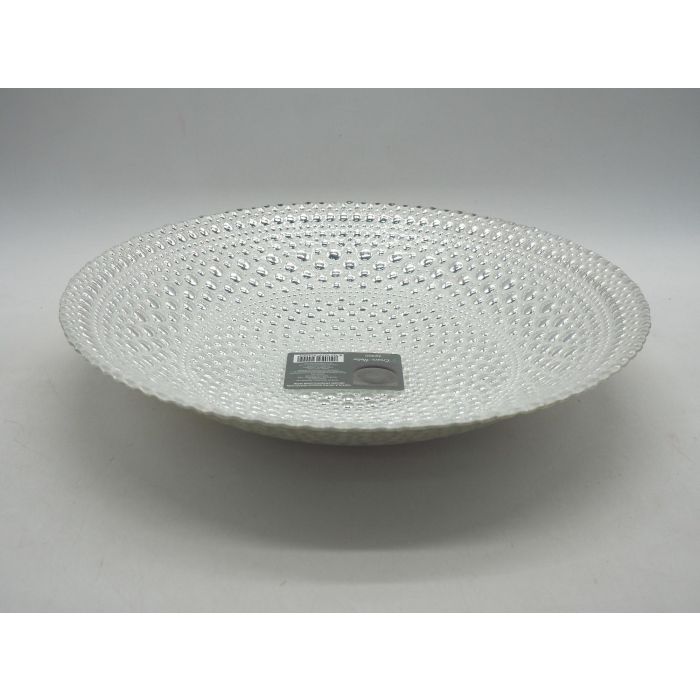 CIOTOLA DI VETRO BIANCO OPACO CON DECORI ARGENTATI D. 30CM