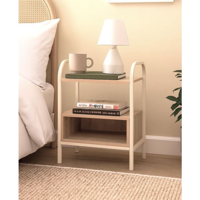COMODINO MOD. CURVY CM 40X30 H.50 METALLO BEIGE/MDF EFFETTO LEGNO NATURALE