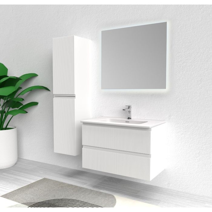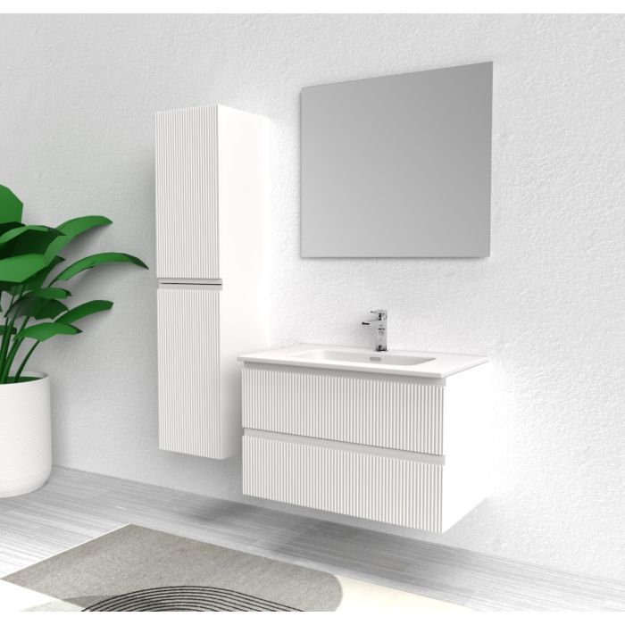 Composizione bagno moderna in finitura bianco opaco effetto cannettato, composta da: