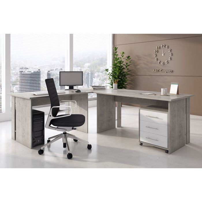 Conmposizione scrivania mod. omega1 beton e bianco frassinato