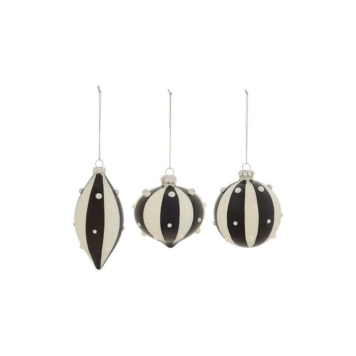 SET 3 SFERE DI VETRO A RIGHE BIANCO/NERE FORME ASSORTITE