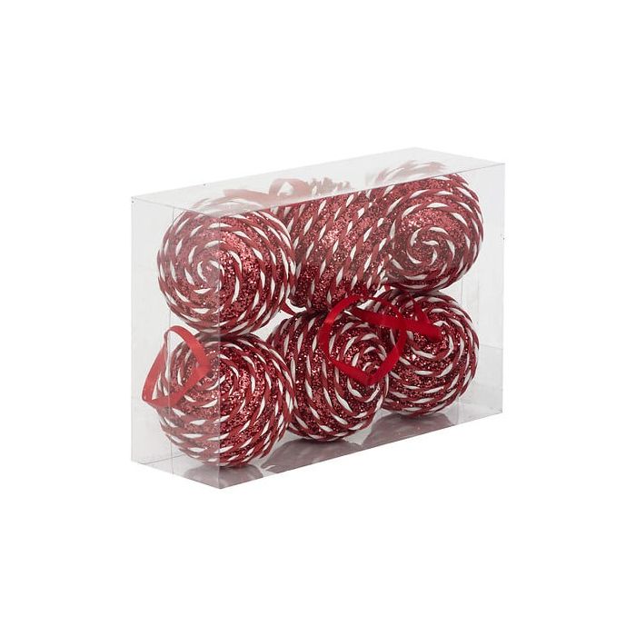 SET 6 SFERE DI PLASTICA DIAM. 8CM ROSSE GLITTERATE/BIANCHE