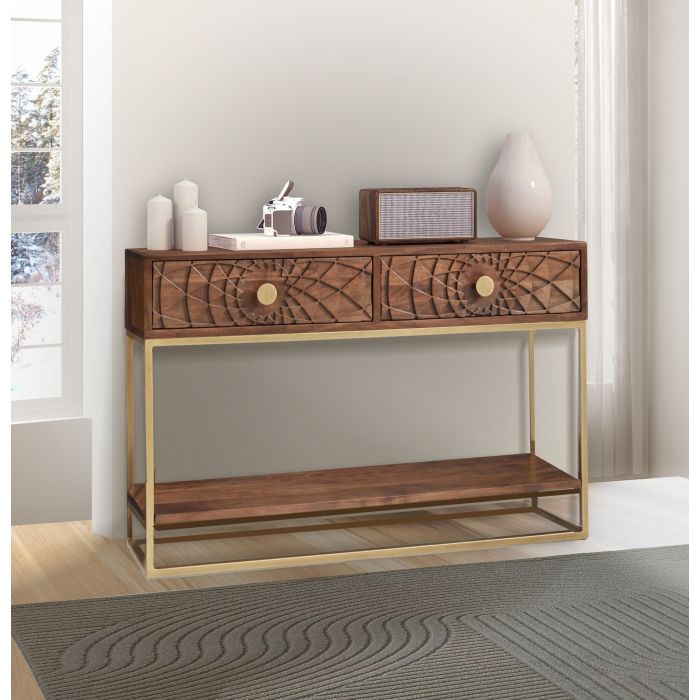 CONSOLLE MOD. SBJ-05 IN LEGNO DI ACACIA E METALLO