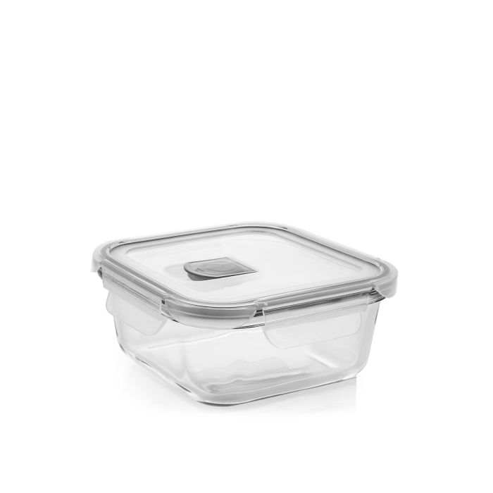 CONTENITORE IN VETRO QUADRATO CON COPERCHIO IN PLASTICA CON VALVOLA530ML