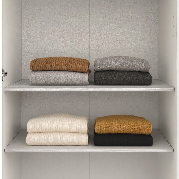 Con una lunghezza di 122,8 cm, i ripiani offrono una superficie ampia e funzionale, ideale per organizzare abiti, accessori, scatole o oggetti decorativi all’interno di armadi, cabine armadio o sistemi modulari.