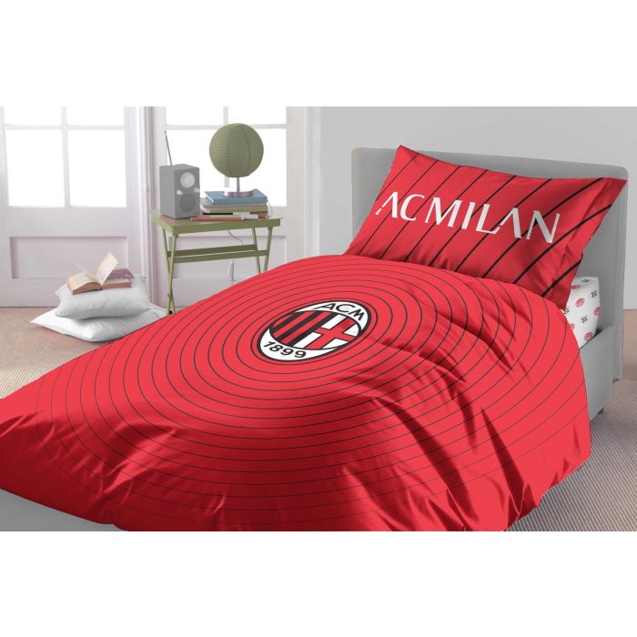 Parure copripiumino Milan da 1 piazza, realizzata in tessuto 30x30/29x22 100% cotone, morbido, traspirante e confortevole, ideale per aggiungere stile e carattere alla cameretta dei tifosi; pratica da mantenere grazie alla lavabile in lavatrice a 40°, non candeggiare, asciugatura a tamburo consentita, stiratura fino a 150° e no lavaggio a secco, perfetta per un uso quotidiano resistente e duraturo.