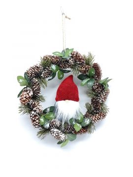 CORONA NATALIZIA CON FIORI E AGHI DI PINO DIAM. 19 ASSORTITO