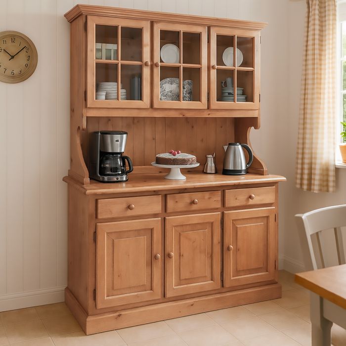 CRISTALLIERA MOD. LOSANNA IN LEGNO DI PINO CM 147X43 H. 195 TINTA MIELE