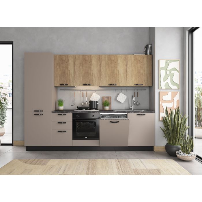 CUCINA MOD.MIRA COMP.ERIKA CM 285X60 H.216 FANGO OPACO E NEBRASKA VERSIONE SINISTRA