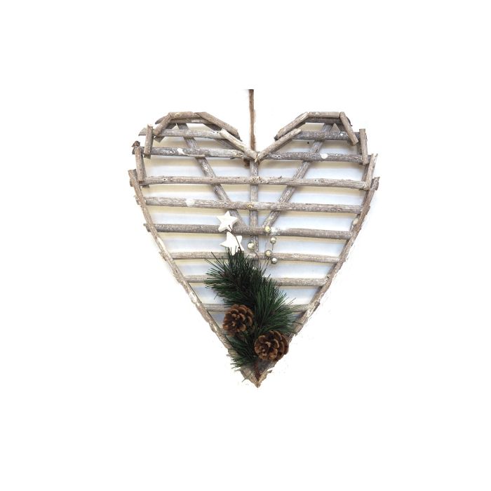 CUORE RAMI SBIANCATO 31X35X3CM C/PINO/PIGNE/STELLE BIANCHE