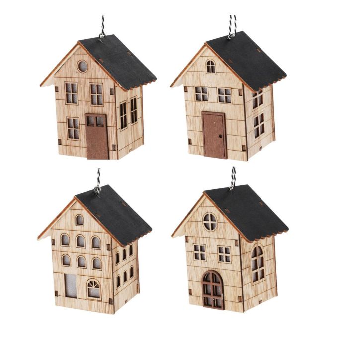DECORAZIONE DA APPENDERE CASETTA DI LEGNO CON LED H 8CM ASS.