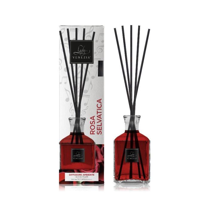 DIFFUSORE PER AMBIENTI CON BASTONCINI CUBO 250ML ROSA SELVATICA