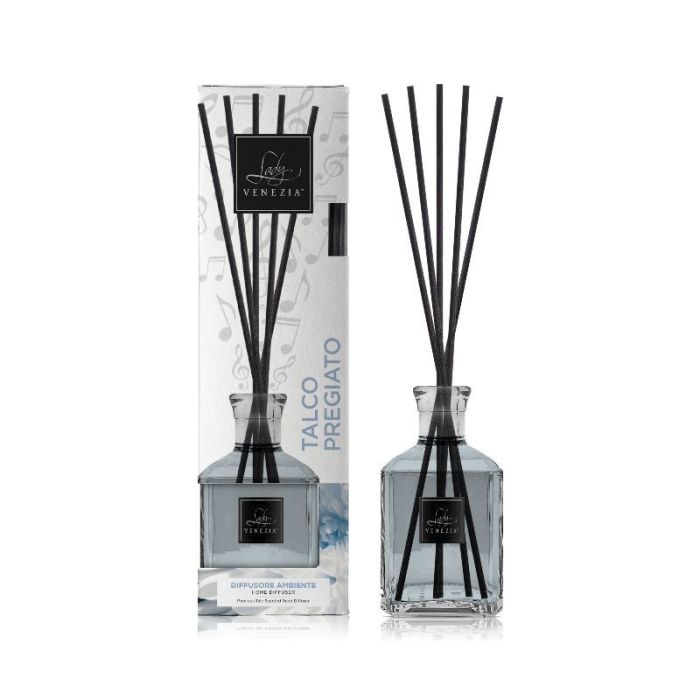 DIFFUSORE PER AMBIENTI CON BASTONCINI CUBO 250ML TALCO PREGIATO