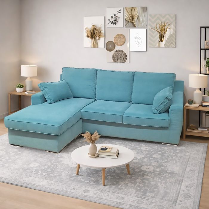 SALOTTO MOD. HELEN CON PENISOLA IN TESSUTO TURCHESE
