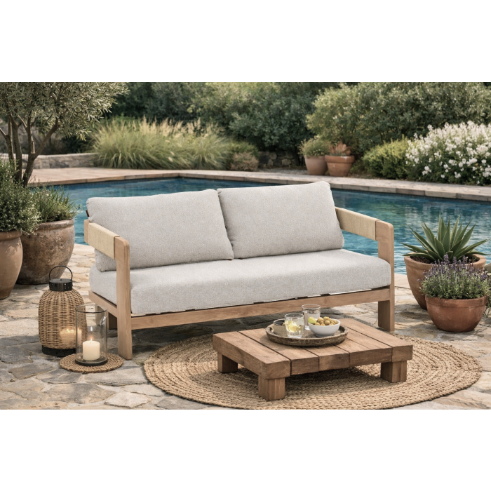 DIVANO 2P DA ESTERNO ORYNA IN ALLUMINIO EFFETTO LEGNO MIELE E MELANGE BEIGE