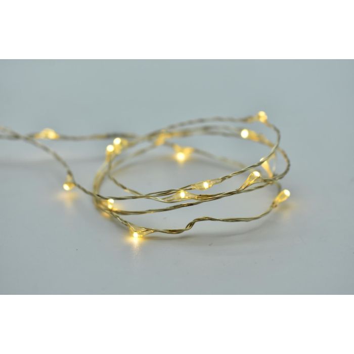 Note | - Lunghezza catena luminosa: 15mt; - Lunghezza cavo di alimentazione: 5mt; - Filo in metallo argentato; - Giochi di luce con timer (6 ore ON/18 ore OFF); - Con trasformatore 12V; - Per uso interno ed esterno |